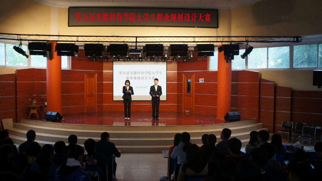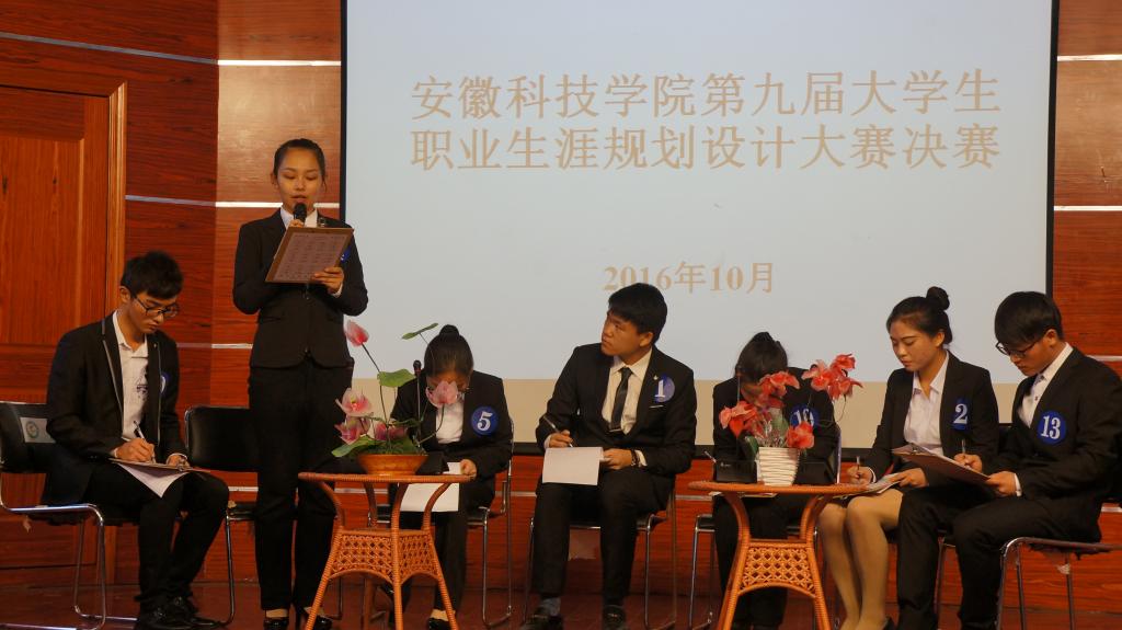 为强化大学生职业规划意识,提高毕业生就业竞争力,10月26日下午,由招生与就业工作处、团委和创新创业教育学院联合举办的第九届安徽科技学院大学生职业规划设计大赛决赛在学术报告厅举行。学生处处长何永勇、招生与就业工作处处长黄树桥、团委副书记黄立义,招生与就业工作处副处长杜小明、教务处实践教学管理科科长宛传平担任了本次比赛的评委,200多名师生观看了比赛。