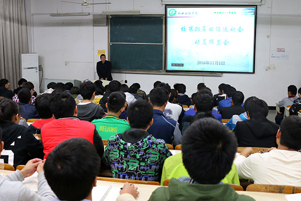 11月1日晚,机械工程学院在求A207召开校第26届运动会动员布置会。机械工程学院全体运动员及学生会全体成员参加此次会议。会议由学院党总支秘书张程主持。