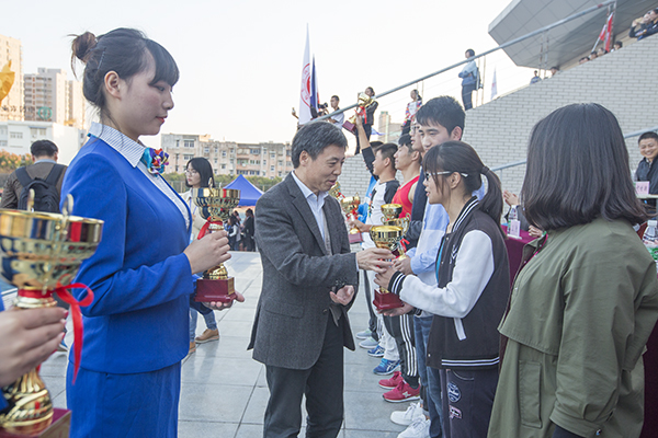 11月5日下午16:30分,我校第二十六届田径运动会闭幕式在西区体育场隆重举行。党委书记蒋德勤,党委委员、副校长黄远友及本届运动会组委会全体成员出席闭幕式。体育运动委员会副主任、体育教学部主任孙志双主持闭幕式。与会领导蒋德勤、黄远友等分别为获奖单位和个人颁奖。