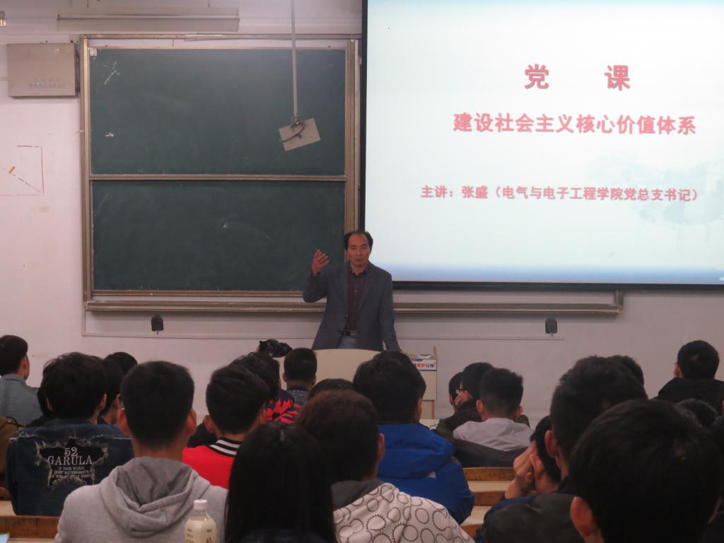 为积极营造培育和践行社会主义核心价值观的浓厚氛围,进一步增进师生对社会主义核心价值观的认同,11月9日,电气与电子工程学院党总支书记张盛作培育和践行社会主义核心价值观专题讲座。学院45期党校学员和入党积极分子聆听了讲座。