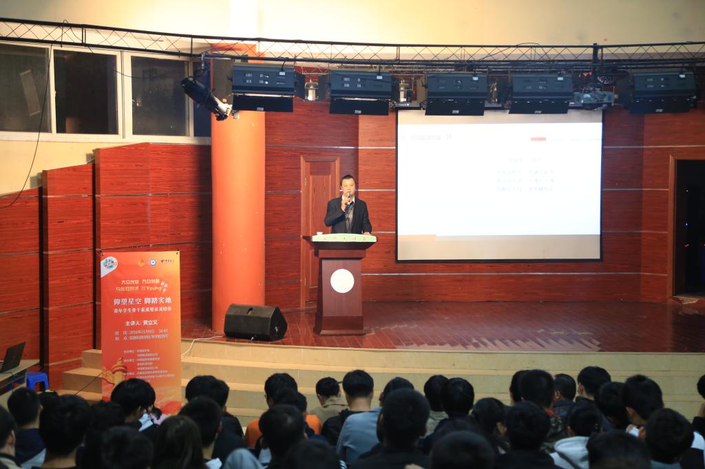 黄立义以“仰望星空,脚踏实地”为题,从青年学生骨干素质要求及培养的角度,与学生干部做了一次精彩分享。他首先简要介绍了共青团安徽科技学院委员会及团学工作体系,对青年学生干部的综合素质提出要求,呼吁学生干部学习发展的新理念,将创新、协调、绿色、开放、共享的发展理念用来创新工作、协调个人发展、倡导节约意识、开拓眼界视野、树立共享理念。他号召青年学生积极参加“青年马克思主义者培养工程”,早日树立正确的人生信仰。