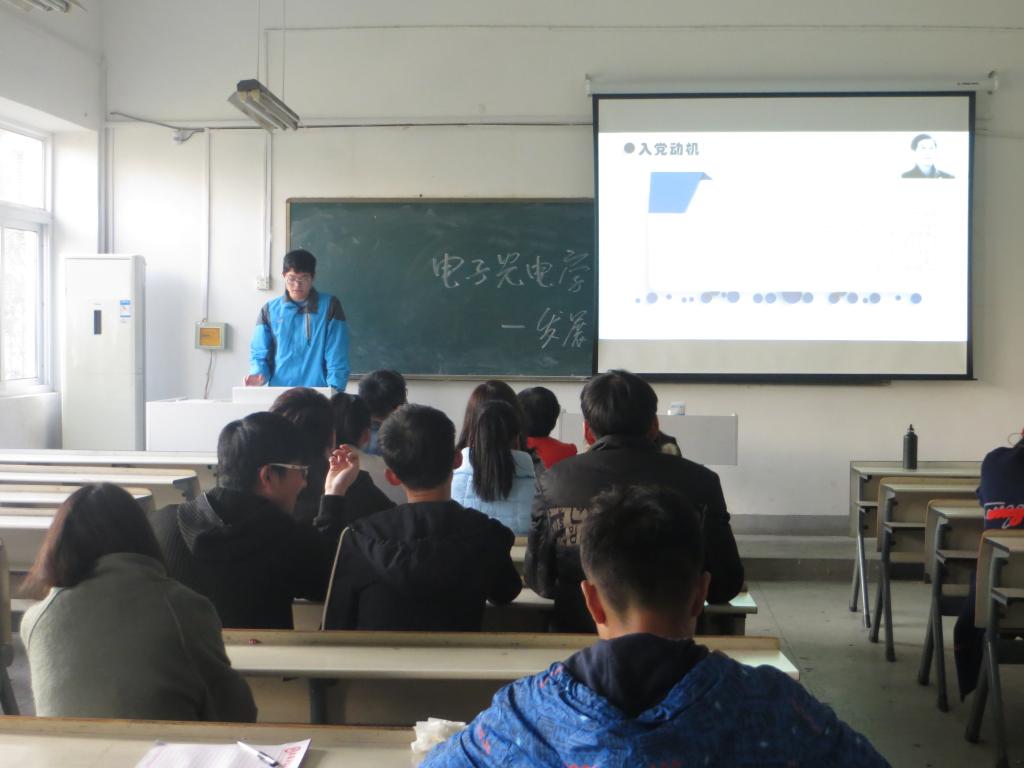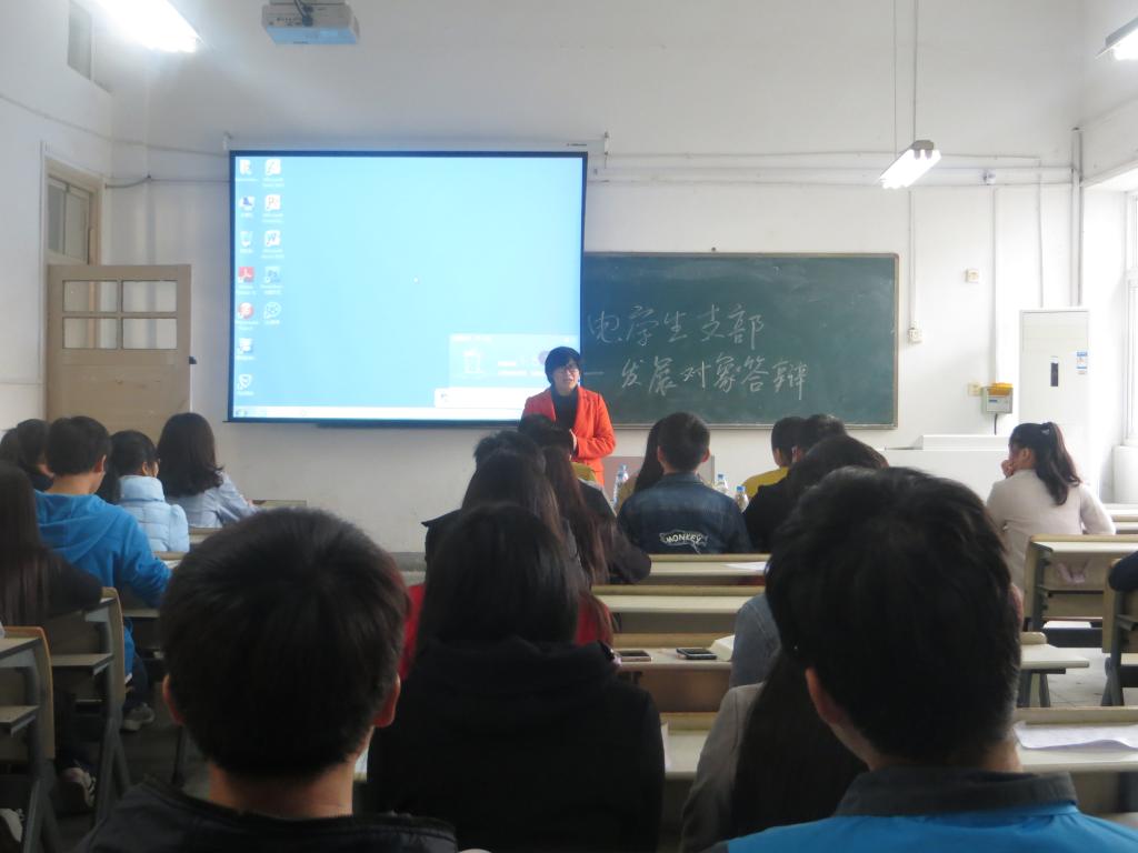 答辩会采用答辩人自我评述加评委提问的形式,针对学生的入党动机、对党的认识,以及思想、学习、生活等各方面进行了深入的考察,给出答辩成绩。根据答辩成绩、群众座谈、学习表现和综合表现等,作为后续组织发展工作的重要依据。答辩人首先上台自我介绍,然后就自身情况进行简述,最后就个人对党的认识和入党动机进行重点陈述,表明自己加入党组织的决心。段素梅、何恩杰及全体学生党员在听取完答辩人的发言之后,根据其汇报内容进行提问,问题主要涉及《中国共产党章程》、党规和系列讲话内容中的“党的性质和指导思想是什么?”、“党员的权利和义务有哪些?”、“习近平总书记4﹒26讲话对青年人提出了怎样的要求”、“作为班委,你为班级做了哪些事?”等,评委们十分客观地指出大家的不足和下一步努力的方向。