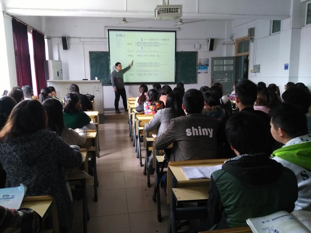 11月18日上午,凤阳中学教师郭信为生物科学卓越班同学上了一堂示范课,正在实习的2013级生物科学师范专业的同学一同参加了观摩。