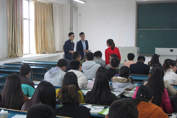 11月18日上午,管理学院于新知楼A503教室举办中粮集团专场招聘会。宣讲由中粮肉食(江苏)有限公司上海分公司上海区业务主管张家臣和苏州区销售主管方坤主讲。