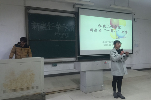11月27日下午,机械工程学院在新B103教室举行新老生“一帮一”成果汇报会。2016级全体学生干部以及部分老生班级代表观看了结对帮扶成果展。