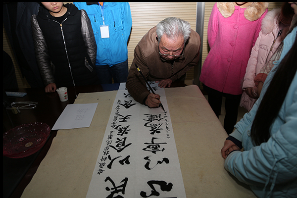 活动期间,众多书法家纷纷登台,现场挥笔泼墨;作品形式或行或楷,或隶或草,风格或清秀或拙朴,或严谨或洒脱,均表现出较高的书法艺术水平。现场气氛十分热烈,众人纷纷围观,悉心品评,完全陶醉在书法家们行如流水般的挥毫间,每当一幅作品完成都赢得大家热烈的掌声和叫好声。