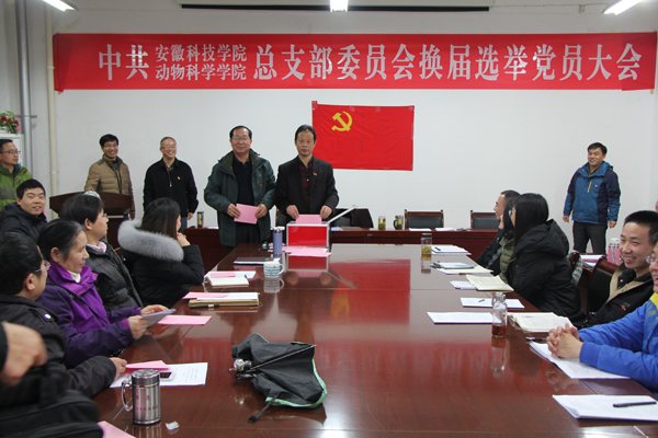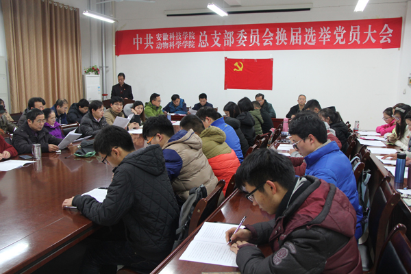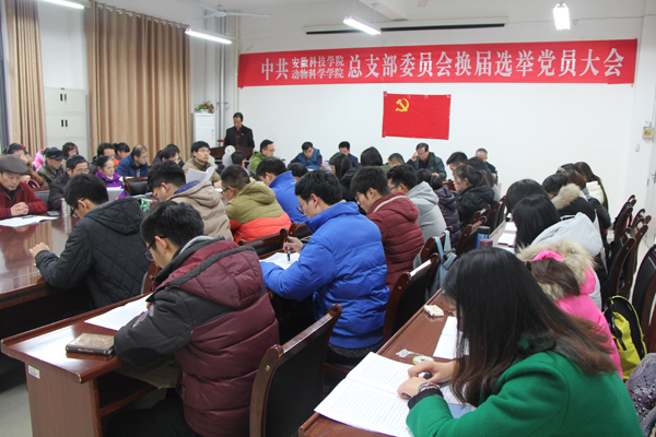 锐意进取善作为,勇挑重担谋发展。12月21日下午,中共安徽科技学院动物科学学院总支部委员会换届选举党员大会在动科院会议室胜利召开。动物科学学院本届党总支委员会委员在主席台就坐。学院60名师生党员参加大会。大会由学院党总支副书记李忠主持。