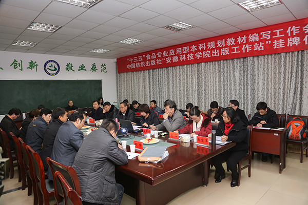 12月22日-24日,“十三五”食品专业应用型本科规划教材编写工作会议暨中国纺织出版社安徽科技学院出版工作站挂牌仪式在我校召开。中国纺织出版社总编李炳华、安徽科技学院教务处副处长王培章,以及全国本科院校食品专业的34位教师出席了会议。会议由食品药品学院院长李先保主持。