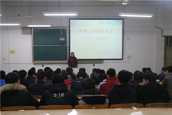 12月27日下午,机械工程学院在求知楼A103教室召开了学期末班级主要学生干部会议。学院党总支副书记路云出席会议,会议由党总支秘书张程主持。