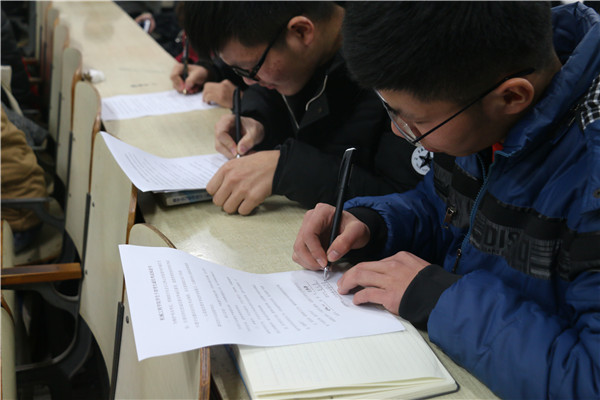 会上,全体班长和团支书签订了《机械工程学院学生干部(班级)诚信考试承诺书》。(特约通讯员:陆双双)