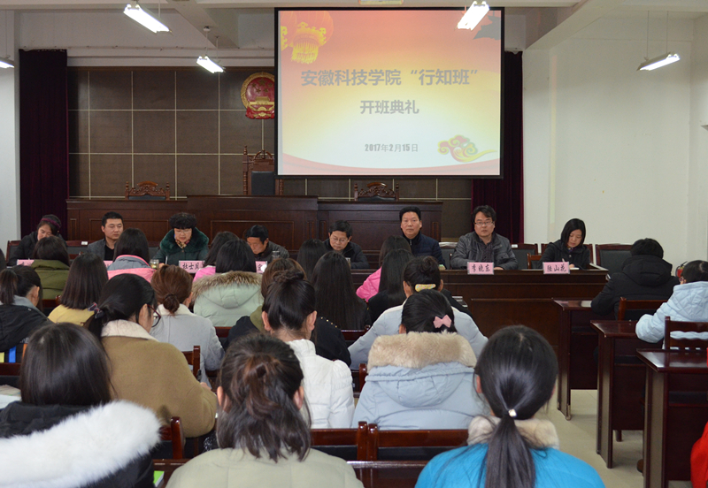 2月15日下午,人文学院与蚌埠行知高级中学在模拟法庭隆重举行“行知班”开班典礼。人文学院院长陈传万、党总支书记杜士凤、副院长李晓东、汉语言文学专业教研室主任陆山花、正科级辅导员李沙娜,蚌埠行知高级中学董事长肖振宏、校长欧振宝、副校长王仕康出席典礼。2016级汉语言文学专业37名“行知班”学生参加典礼。典礼由杜士凤主持。