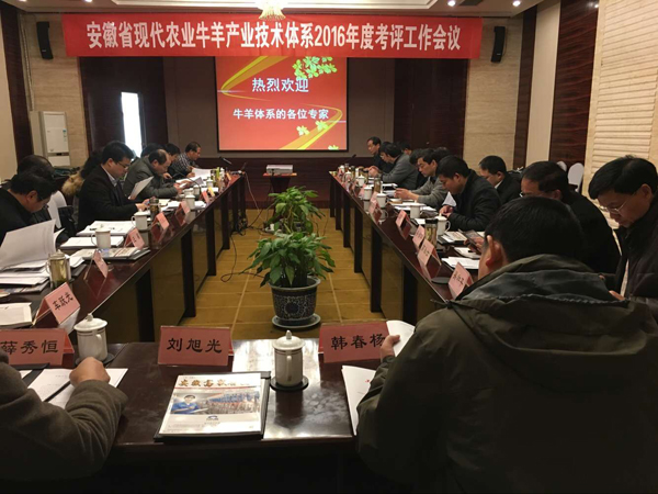 2月15日,安徽省现代农业牛羊产业技术体系2016年度考评工作会议在合肥辰茂和平酒店召开。我校党委委员、副校长郭亮,省农委科教处处长张泽坤,畜牧兽医局副局长田文钊,财务处处长潘鑫,畜保中心副主任田传春,体系办主任章玉松,畜牧技术推广总站总畜牧师吴宓,科研处处长顾有方,省现代农业牛羊产业技术体系首席专家王立克教授及岗位专家和综合试验站站长等相关人员出席本次会议。会议由章玉松和王立克分别主持。