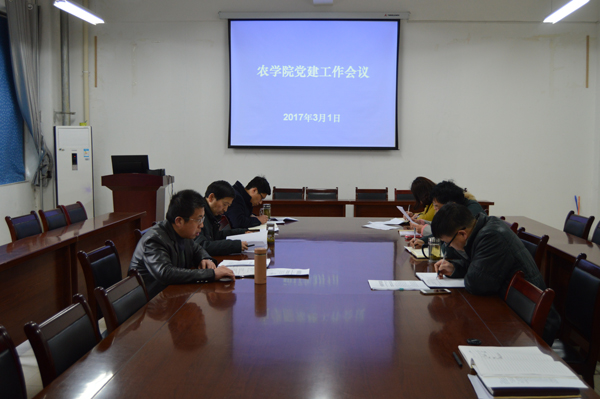 3月1日下午,农学院在会议室召开党建工作专题会议,部署“两学一做”学习教育专题组织生活会和民主评议党员工作。农学院全体党政领导、各支部书记参加会议。会议由农学院党总支书记何世潮主持。