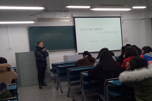 为切实做好全院学生的心理健康教育工作,加强班级心理委员队伍建设,提高班级心理委员为广大同学开展服务的工作水平。外国语学院于3月1日晚,在求B107教室举办了班级心理干部培训讲座,讲座由学院心理辅导老师、国家级心理咨询师陈慧中担任主讲,学院各班级心理委员、宿舍心理健康宣传员,学生会心保部全体成员聆听讲座。