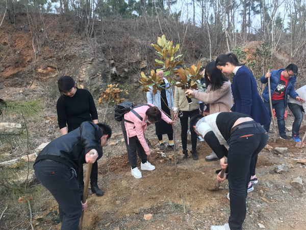 数十学生携带广玉兰、玉兰、银杏及桂花十六株,植树工具及运水工具,一同上山。过程中,树苗较为沉重,不少男生主动帮女生拿树,拿工具,提水。到了后山才发现,植树并没有想得那么容易。山上土层浅石头多,仅仅是挖个树洞,就已经困难不已。工具上的简陋,经验上的不足,以及土质上的原因,使得整个过程难上加难。但是,志愿者迎难而上,一方面去寻找新的植树工具,一方面积极努力中。负责挖树坑的部分同学不足十分钟,手上就多了个水泡,甚至,腿上也有受伤的。没有挖树洞的同学,则是去帮忙运水,拍照片,甚至还有帮忙擦汗的。