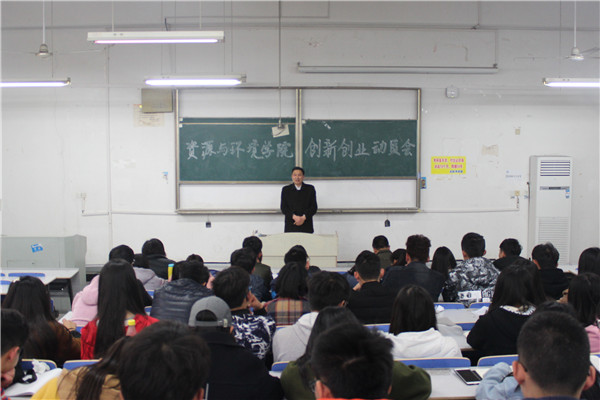 为培育学生的创新创业精神,提高学生参与创新创业热情,3月15日下午,资源与环境学院在求A106召开大学生创新创业动员大会。资源与环境学院党总支书记李孟良,副处级辅导员谢宜勤,院长助理李孝良,2016级新生辅导员杨小晗出席本次大会,各专业班级班长、团支书、学习委员以及全体学生会成员参加本次大会。会议由谢宜勤主持。