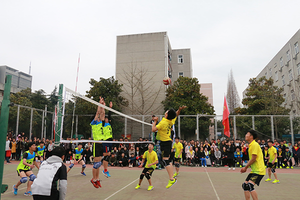 比赛中,机械工程学院开局进入状态快,以25:17的比分顺利拿下第一局;第二局比赛开始,双方比分一直僵持不下,资源与环境工程学院顶住压力,以27:25的比分扳回一局;第三局,机械工程学院积极改变战术,收到了良好的效果,再次以25:17拿下一局;易地再战,第四局开始机械工程学院抓准机会,成功拿下首分,并将比分拉开至17:11。但随着双方队员体力下降,失误逐渐增多。随后,资源与环境学院凭借着多次漂亮的传接配合,给予还击,多次得分,一度将比分反超为18:17。机械工程学院及时做出调整,暂停、换人、改变战术,最终本局比分定格在27:25,以大比分3:1拿下本次联赛揭幕赛的胜利。