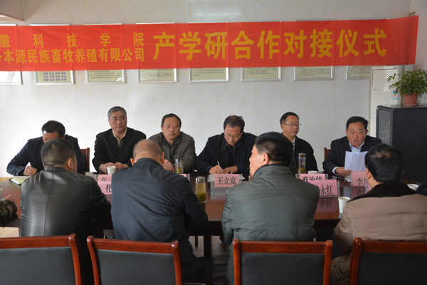 3月16日,我校与蚌埠市重点肉牛养殖企业开展了产学研对接活动,会议在五河县务本源民族畜牧养殖有限公司召开。蚌埠市畜牧兽医局局长柳恩国,五河县人大常委会副主任王成图、人大农工委主任陈永红,五河县农委主任郑文权、副主任魏永梅,五河县临北乡党委书记郑伟、镇长杨志勇,五河县务本源民族畜牧养殖有限总经理李坤跃,我校科研处处长顾有方教授,动物科学学院院长、省牛羊体系首席专家王立克教授,省牛羊体系试验站站长蔡治华教授,生命科学学院高林副教授等出席了对接活动。会议由郑文权主持。