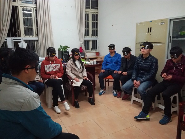 培训在轻松活泼的热身音乐《欢乐节拍》中展开,之后从音乐治疗的起源发展,音乐治疗的特点,音乐与呼吸训练法的结合以及音乐意象的心理投射等四个方面进行详细阐述。在讲解过程中,适时穿插音乐治疗体验环节,进行了音乐减压呼吸放松、情绪释放、潜意识投射,在进行培训的同时也为心理干部进行了一次音乐减压团体辅导。