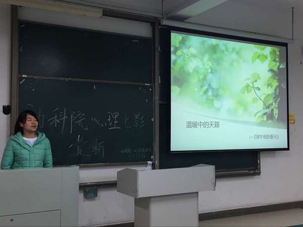 3月26日晚7:00,动物科学学院在新A104教室举行了以“温暖中的天籁”为主题的心理影片赏析活动。学院全体心理委员参加了此次活动。