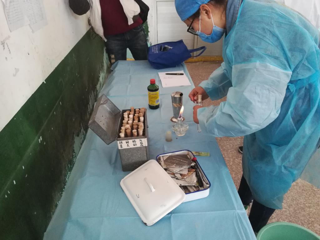 疾控中心、卫生管理所一行来到官塘卫生院,分别对医院内科治疗室、外科换药室、防疫接种室等处进行检测。对消毒液、保存液、紫外线灯、医务人员双手进行认真细致的监测以及样本的采样,同时卫生监督所负责人仔细查看了医院的相关记录资料,对医疗废弃物的分类处理进行了检查。检测过程中,疾控中心相关负责人对随行的同学普及日常的消毒药品分类以及消毒方法与步骤。