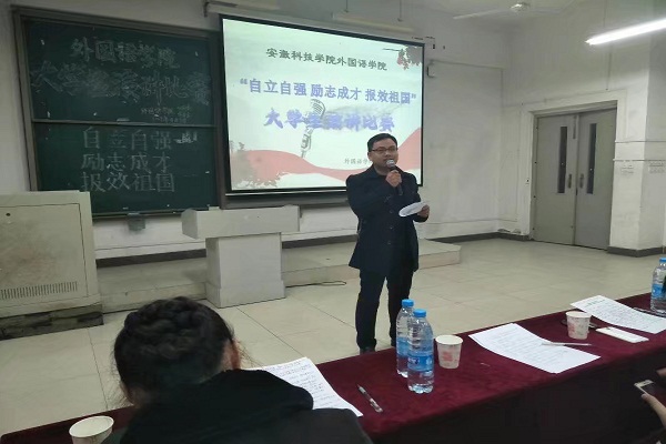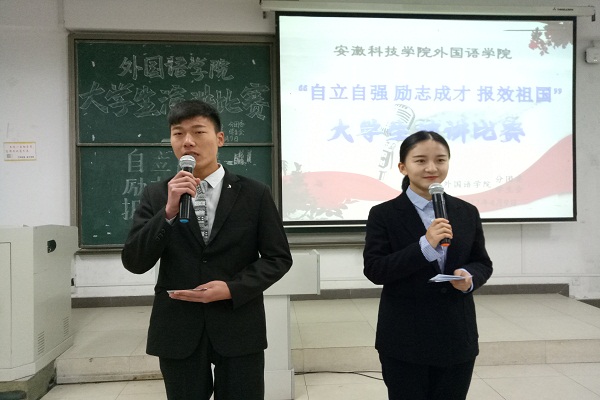 为深入贯彻党和国家有关家庭经济困难学生资助政策,充分发挥国家资助政策体系育人作用。外国语学院于4月9日晚在新知楼B101教室举办“自立自强励志成才报效祖国”主题演讲比赛。校学生处资助中心主任黄钦海,外国语学院党总支秘书、分团委书记张海亮,校学生会副主席代芳玲,校演讲与口才协会会长王美娜担任评委。外国语学院副科级辅导员陈慧中以及全体16级同学共同观看比赛。