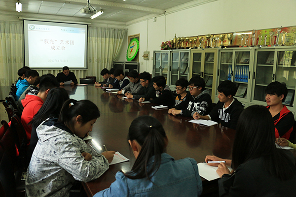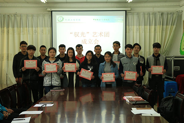 4月12日中午,机械工程学院在会议室召开大学生“驭光”艺术团成立会。大学生艺术团全体成员和学生会相关成员参加了会议。会议由党总支秘书张程主持。