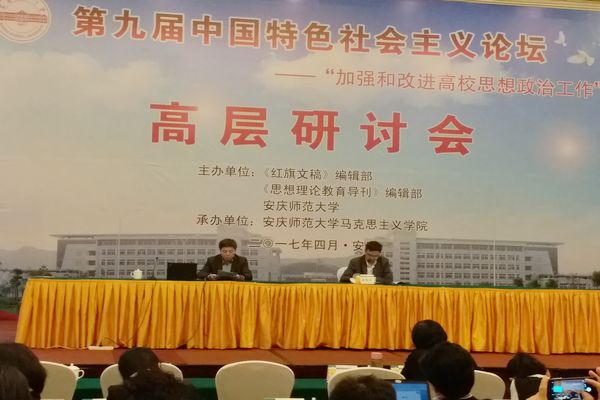 4月15日-16日,由求是杂志社《红旗文稿》编辑部、高等教育出版社《思想理论教育导刊》编辑部联合主办的第九届中国特色社会主义论坛——加强和改进高校思想政治工作高层研讨会在安庆师范大学隆重召开。来自全国70多所高校、报刊杂志及部分门户网站的120余名专家学者参加本次论坛,校党委书记蒋德勤应邀出席并作主题发言。