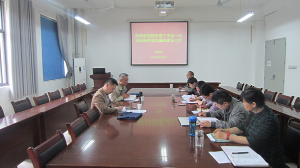 4月20日下午,校党委委员、纪委书记丁和生在纪委办公室副主任张宏喜的陪同下,深入农学院调研指导党风廉政建设工作。农学院党政领导、党总支委员、工会委员代表、民主党派代表以及普通教师代表参加了调研会。