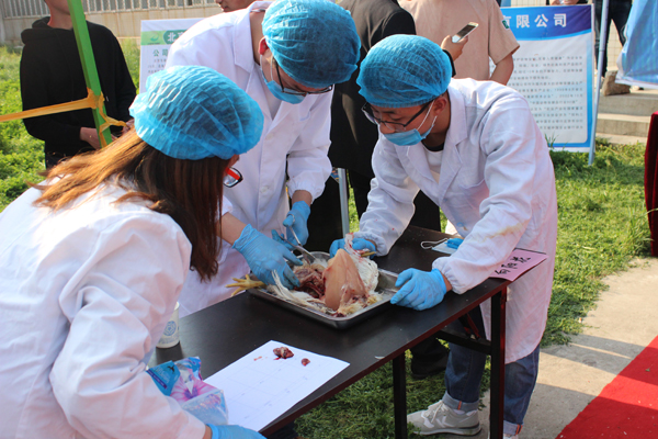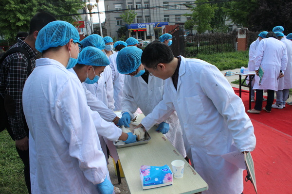 本次专业技能大赛举办到今年已经是第五届,其内容和形式得到了不断地变化和更新,既延续了一些传统比赛项目又结合专业发展不断丰富和充实。经过初赛和复赛,本次的决赛共筛选出20支队伍进行比拼,由评委依次对各队进行观察及打分,决赛的主要内容有:疫苗注射;鸡心脏采血及翅下静脉采血;家禽临床症状识别、解剖记录及病例分析。大赛严格按照疫病防治要求,对比赛用到的实验物品及场地采取了严格的消毒措施,对选手的操作进行赛前的规范性指导,评委们也认真的对各团队的表现进行了点评。