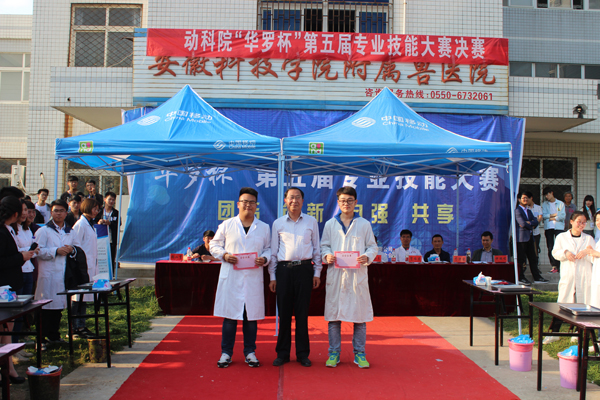 4月22日下午3:00,动物科学学院"华罗杯"第五届专业技能大赛决赛在兽医院顺利举办。动物科学学院院长王立克,兽医院院长陈会良,预防兽医学教研室主任路振香,基础兽医学实验室主任靳二辉,临床兽医学教研室贺绍君,武汉中牧股份华罗一部副总经理、皖中区经理于洪波,中牧股份皖南区经理钟鹏程,北京生泰尔集团华东区业务经理张二贯出席本次大赛并担任比赛的嘉宾及评委。