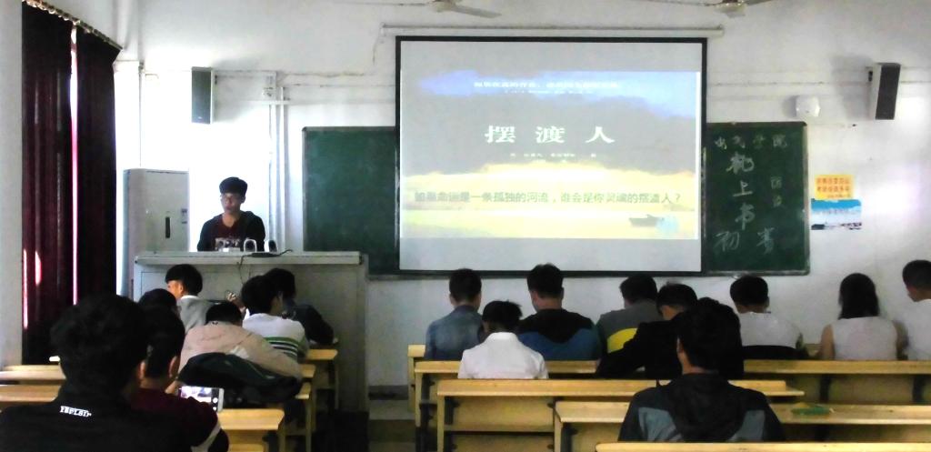 每支参赛队伍由1-4人组成,各队伍首先通过PPT用2到3分钟简单介绍书籍,再用4到5分钟的时间节选书中精彩的篇章进行朗诵。评委们根据各支参赛队伍的综合表现进行打分。各支参赛队伍选取的书籍各有千秋,有红色经典《红岩》,外国名著《摆渡人》、《约翰,克里斯多夫》,还有获得茅盾文学奖的励志著作《平凡的世界》等等。比赛中,各支队伍的朗读者们认真投入,他们用精美的ppt画面配合他们声情并茂的朗诵,让聆听者仿佛置身于书中的世界,感受到了语言文字的优美,感受到了作者在字里行间里流露出的情感。选手们的生动朗读,让我们对同一本书又多了一层理解。最终,经过激烈的角逐,九组队伍晋级决赛。