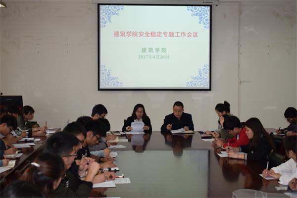 为切实做好学院安全稳定工作,加强学生安全意识,杜绝可能发生的学生伤亡等事故,建筑学院于4月26日中午召开安全稳定工作专项会议,学院全体辅导员及全体班长、团支书参加会议。