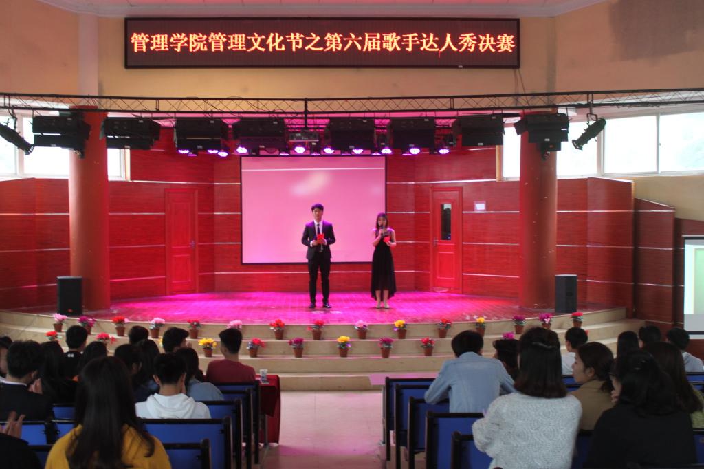 5月3号下午,管理学院在老学术报告厅成功举办管理文化节之第六届歌手达人秀决赛。本次比赛由校广播台台长蒋浩淼、校大学生歌手协会会长马金宝、资源与环境学院学生会主席傅贤举、食品与药品学院学生会主席刘源和管理学院学生会副主席高燕担任评委。