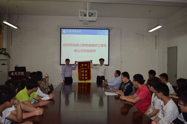 浙江新桃源园林工程有限公司自2015年11月来校招聘,已有余长建、欧翔等建筑学院多名毕业生到企业工作。宋长江高度评价毕业生,指出建筑学院学生专业知识扎实,动手能力突出,肯吃苦耐劳,善与人协作,个人成长快,企业忠诚度高,部分学生已成为公司骨干,与同类院校相比,学生综合素质较高,人才特色明显。企业高层一致认为,毕业生之所以质量高、特色显,与学校的辛勤培养是密不可分的,特为学院送来锦旗以表谢意。同时,也希望今后能进一步与学校合作,为企业输送更多的园林景观和建筑工程高素质人才。