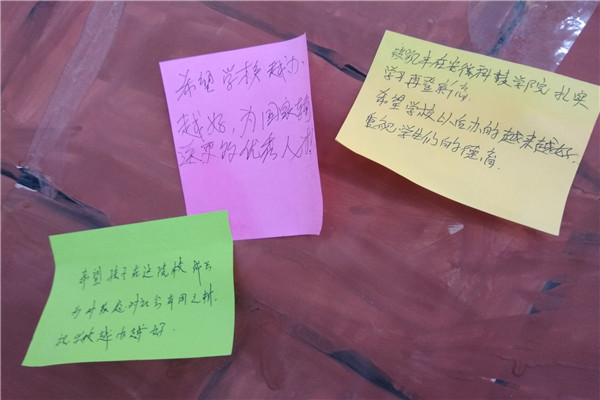 9月16--17日,是新生报到的集中日,对于即将开始的四年大学生活,不仅新生满怀期待和憧憬,家长们对第一次远离家、远离自己的孩子更是有很多话想祝福他们。电气与电子工程学院在迎新现场设置了一个“家长心语墙”,现场征集新生父母对于子女的大学寄语,准备整理完毕后再依据登记的联系方式送到新生手中,不少父母参与其中,并留下如上的话语。