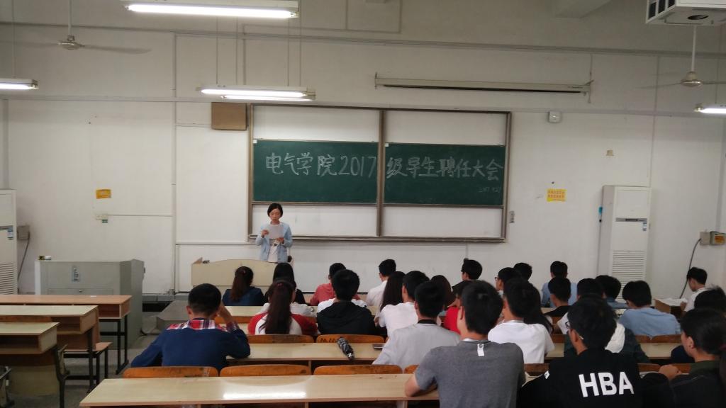 8月27日中午,电气与电子工程学院在求知楼a202教室成功举办2017级导生团聘任大会。全体2017级导生团成员参会,团委副书记王延丽、院学生会、各社团负责人参加会议,会议由导生团副团长徐康良主持。