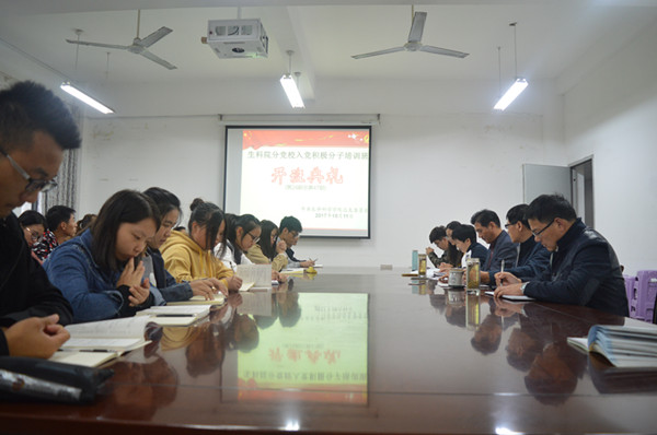 10月11日下午,生命科学学院在学院会议室举办第四十七期入党积极分子培训班开班典礼。学院党总支书记、分党校校长张荣,党总支副书记、分党校副校长周向群,党总支委员高青海,各学生党支部书记以及学生党员代表和第四十七期党校学员参加开班典礼。开班典礼由党总支秘书彭丽萍主持。