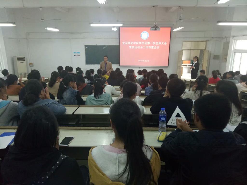 10月25日下午,食品药品学院学生会在学知楼117教室召开第一次全体大会暨校运动会工作布置会议。学院党总支副书记付光玺、副处级辅导员开金苗、正科级辅导员郑玉莲、分团委副书记沈德艳、专职辅导员姜毅出席会议,学生会全体成员参会。