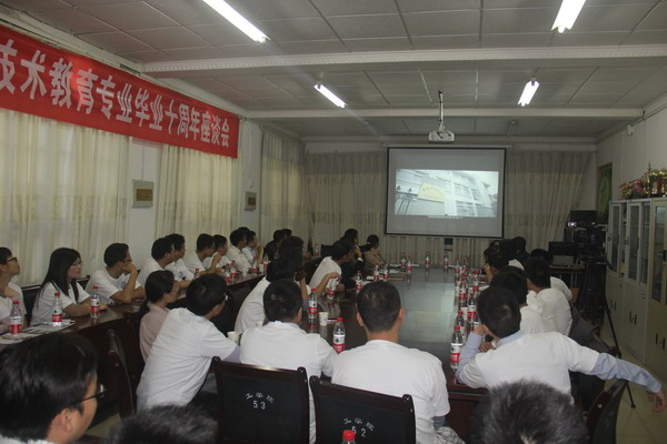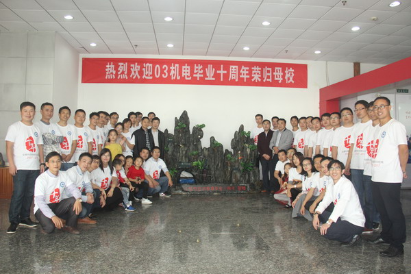 满园花菊郁金黄,中有孤丛色似霜。九月重阳,学子相约,畅谈岁月沧桑,共叙师生情谊。10月28日,2007届机电技术教育专业校友40余人相聚凤阳校区,举办毕业十周年师生联谊会。校党委副书记韦文联应邀出席。机械工程学院党总支书记张开宝、院长陈杰平、校友联谊会办公室主任杜小明、2007届机电班主任姚勇和授课老师代表参加联谊活动。