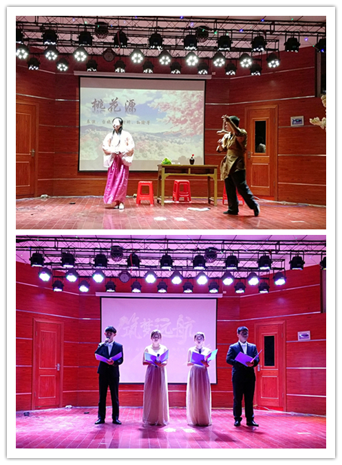 灯火骤灭,踩着律动的节奏,女生热舞率先燃爆全场,男生酷炫的机器人舞步紧随其后,流畅明快的街舞和节奏停歇的机器舞配合完美,引得现场掌声连连。男女深情对唱《那年青春,我们正好》,曲调婉转悠扬,触动在场观众心底最柔软的地方。与流传千古的《西厢记》不同,小品《东厢记》大胆采用反串形式,金句频出,令观众忍俊不禁。法学专业老师田野的口琴独奏《瑶族舞曲》,一瞬间将大家带到雾气缭绕的山林仙境,感受人与自然和谐统一的美妙意境。舞蹈《三生情》唯美轻盈,舞姿曼妙,令现场观众如痴如醉。23 minutes乐队倾心演奏《rocking with the best》电子琴、架子鼓、吉他的结合,伴着铿锵有力的男声将晚会推向高潮。话剧《桃花源》的精彩表演、朗诵和手语舞《筑梦远航》同样惊喜连连,在欣赏之余又让大家感受到了梦想和坚持的力量。晚会在青春昂扬的《红日》声中落下帷幕。