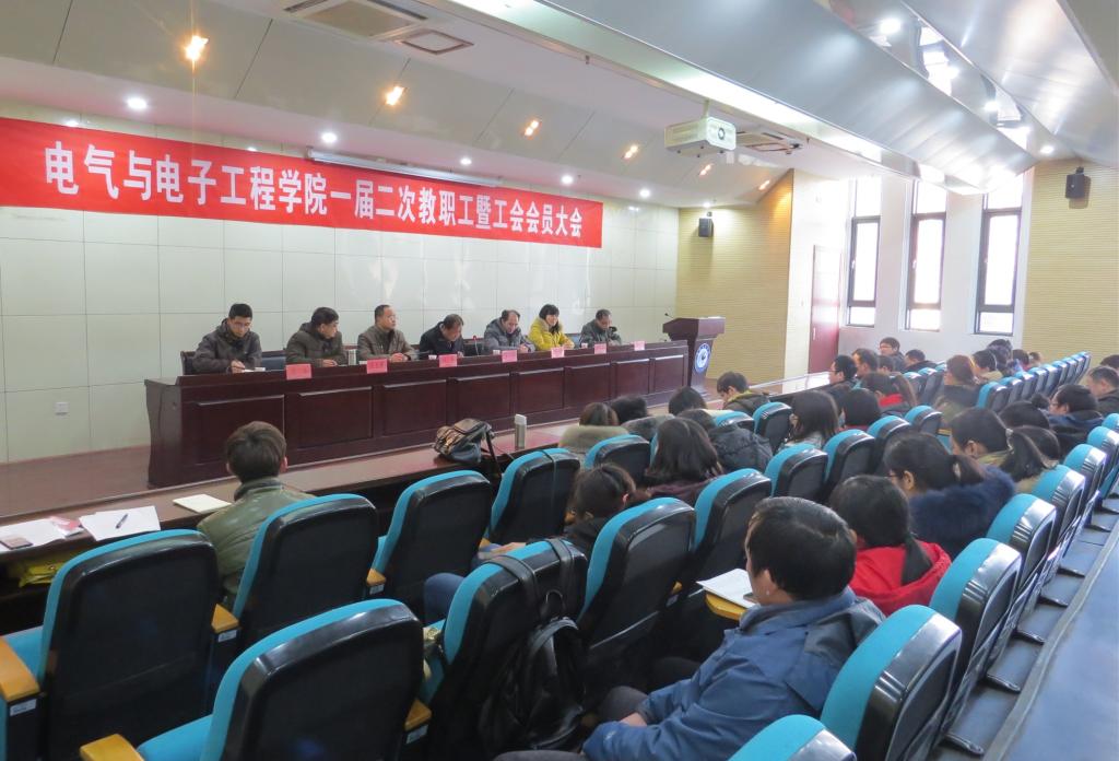 1月11日下午,电气与电子工程学院在图书馆第一报告厅举行一届二次教职工暨工会会员大会。学院党政领导班子、全体教职工参加了会议。会议分为两个阶段,分别由党总支书记张盛和副书记尚磊主持。