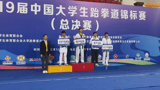 7月12日,第十九届中国大学生跆拳道锦标赛(总决赛)在内蒙古自治区乌兰察布市圆满落幕,我校跆拳道队获得男子甲组团体总分第七名,唐硕(管理学院)获得男子甲组-87KG银牌和“优秀运动员”称号,崔甲贝(化学与材料工程学院)获得男子-80KG级铜牌,褚海玥(信息与网络工程学院)获三等奖。