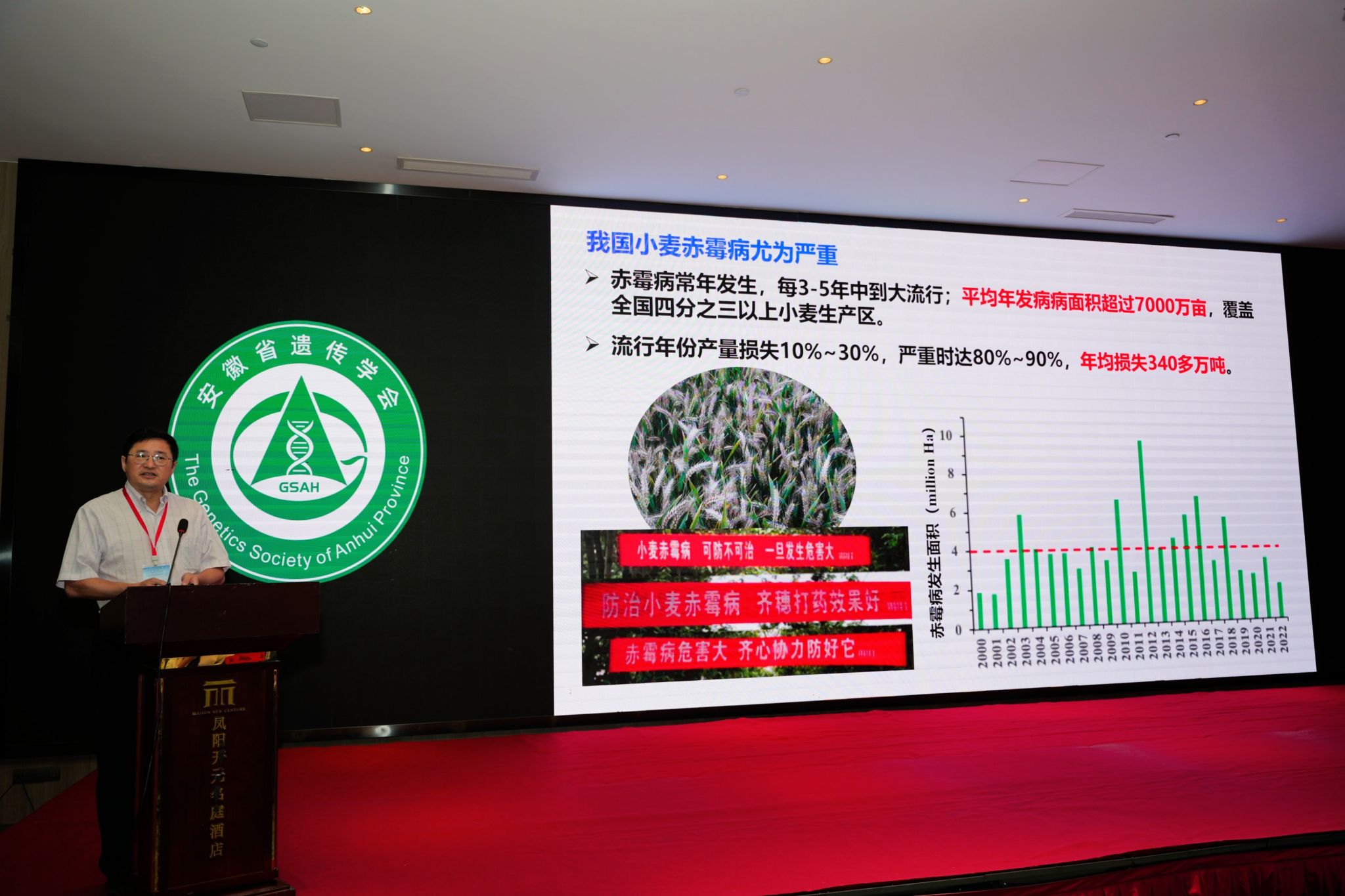 赵伟峰在致辞中向与会专家表示热烈欢迎,并简要介绍了学校“以农立校、特色兴校”的办学理念以及在作物遗传育种领域取得的突出成就。他强调,作为现代农业科技的核心驱动力,遗传学研究对保障国家粮食安全、实现种业振兴具有战略意义,期待本次年会成为深化产学研合作的重要契机,为安徽省农业现代化发展提供新思路、新动能。