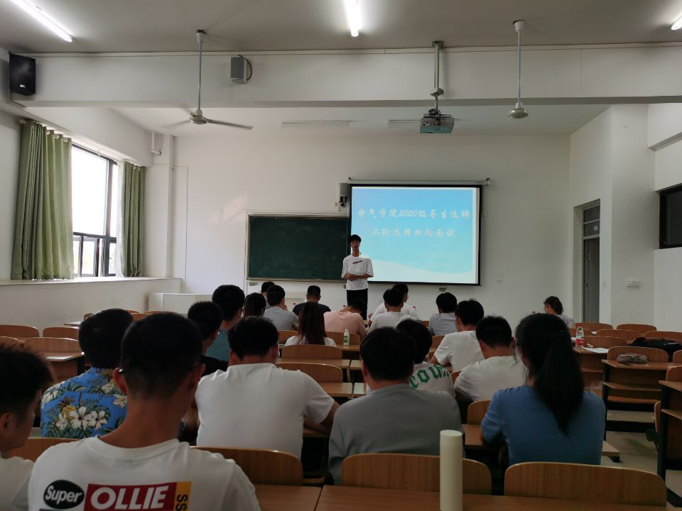 9月11号下午,电气与电子工程学院在致知楼C105召开2020级导生选聘双向选择大会。电气与电子工程学院新生班主任陈更强、韩新风、张深、洪乃羽参加了本次面试会,会议由19级导生谢宏峰主持。
