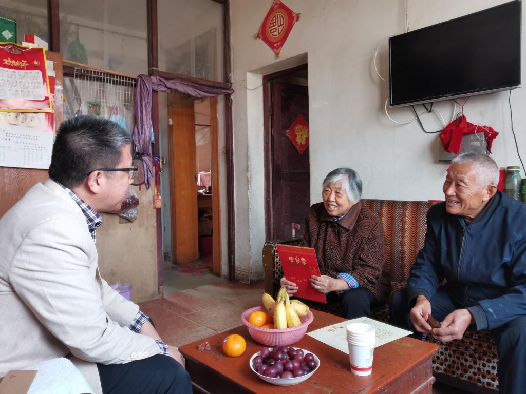11月2日上午,党总支书记何世潮专程前往凤阳县城工人路69号校友家送邀请帖,邀请我校55届农学校友黄士尧、王秀文夫妇参加安徽科技学院七十华诞,专职辅导员汪道兵陪同前往。