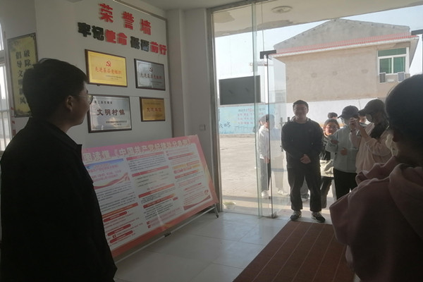 为推动“思政小课堂”与“社会大课堂”深度融合,深化新时代思想政治理论课改革创新,4月1日下午,马克思主义学院教师余维发带领近百名大学生到蚌埠市龙子湖区李楼乡黄郢村开展“学‘习语’ 悟思想 重实践 讲故事 做新人”主题实践教学活动。