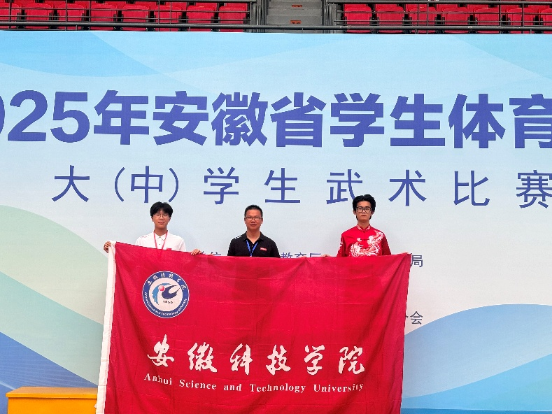 6月22日,2025年安徽省学生体育联赛大学生武术比赛在宿州学院圆满落幕。本届赛事共吸引了来自中国科学技术大学、安徽大学等省内高校230余名运动员参赛。我校武术代表队在领队沈承勋和教练员周倪楚楚老师的带领下,凭借精湛技艺与顽强毅力,斩获二等奖两项、三等奖一项。吴家昊(建筑学院)凭借出色的表现,取得男子甲组自选长拳铜牌和男子甲组自选刀术第四名;储勇(农学院)在男子甲组自选太极拳比赛中荣获第八名。