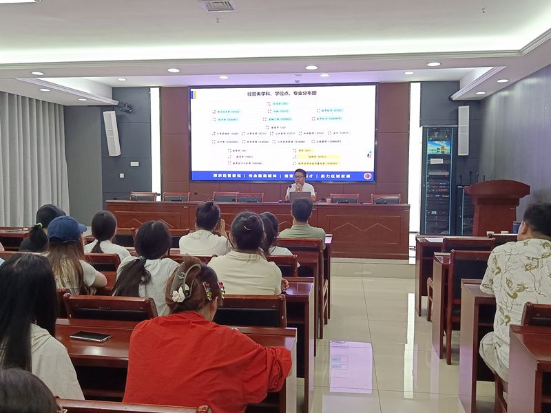 9月10日下午,财经学院组织召开考研备考指导会,邀请相关专家为2026届毕业生进行指导,帮助学生明确考研方向、掌握院校招生动态、提升备考效率。学院院长郝世绵,副院长李宝礼及近150名有考研意愿的学生参会。