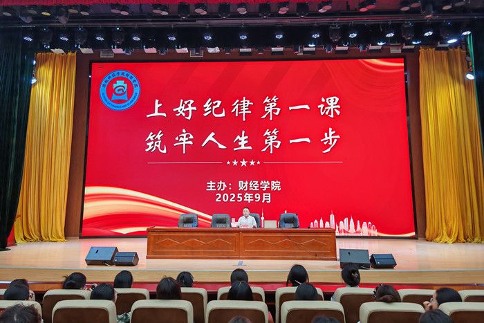 为引导学生树立规矩意识,帮助新生扣好大学生活的第一粒扣子,9月11日晚,财经学院在龙湖校区东辅楼报告厅开展主题为“上好纪律第一课,筑牢人生第一步”的校规校纪集中教育会。学院党委副书记、纪委书记耿广汉主讲,辅导员和2025级新生参加。